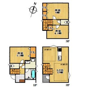 | 間取内訳 | 洋4.5+洋6+納戸5.3+LDK13(帖) |